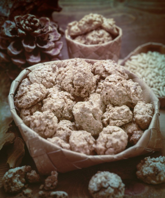 BRUTTI MA BUONI DI BORGOMANERO (Piemonte) + step Ingredienti per circa 20 pezzi: 100 gr di mandorle, 80 gr di nocciole, 200 gr di zucchero a velo, 5 albumi di uova grosse (170 gr circa), 50 g di pinoli, cannella in polvere, 1 bustina di vaniglina, burro e farina per la placca Preparazione: 40 min…