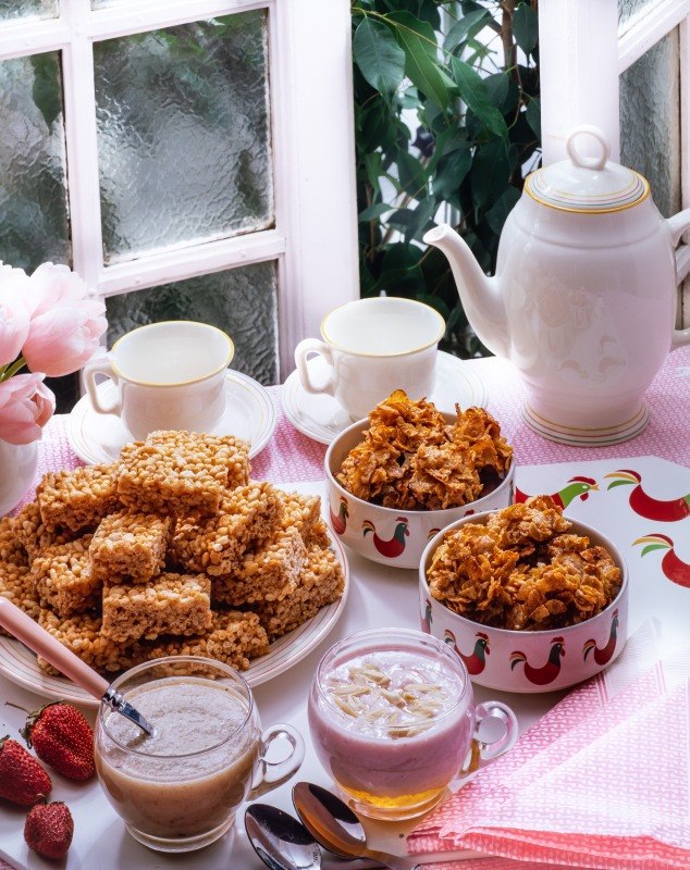 COLAZIONE CON YOGURT E FRUTTA – SFORMATINI DI YOGURT CON FIOCCHI DI MAIS PESCHE ALBICOCCHE CANNELLA – 1863