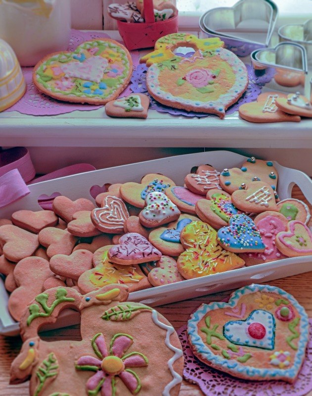 I CUORI RICAMATI Per l’impasto “milanese”: 500 g di farina di grano duro, 50 g di fecola, 100 g di burro, 250 g di zucchero, un uovo + 4 tuorli, 5-6 cucchiai di vino bianco, burro e farina per la teglia. Per le decorazioni: ghiacce diverse Per 30/40 biscotti Tempo di preparazione: un’ora …