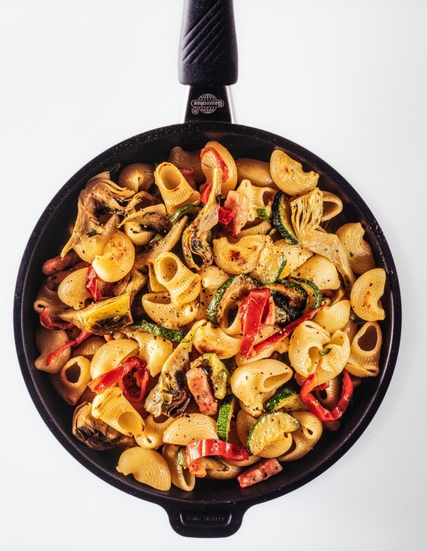 Padella di pipe con zucchine e peperoni quantità