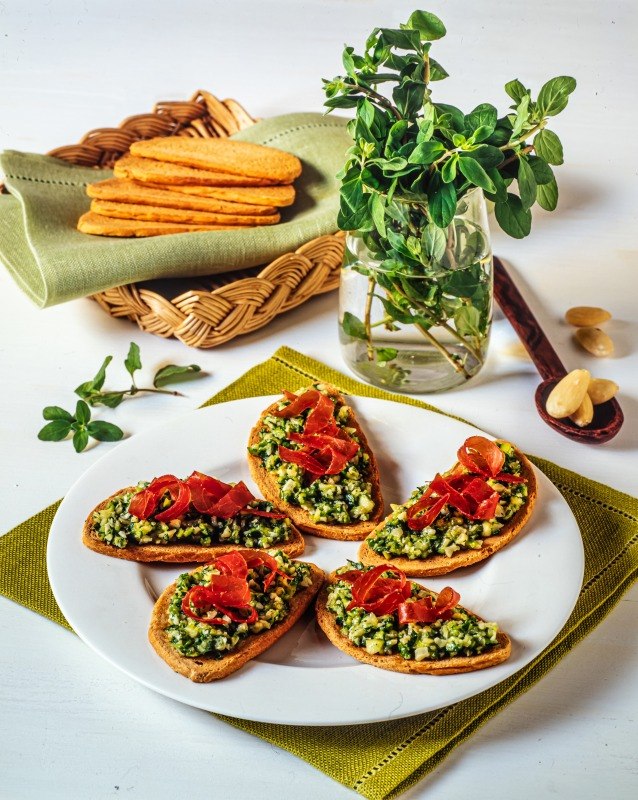 TARTINE CON PESTO DI ZUCCHINE AGLIO ORIGANO E MANDORLE – 5920